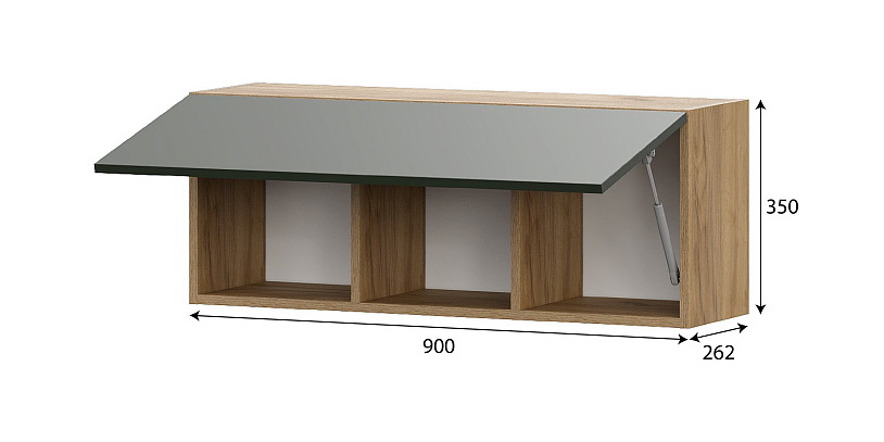 Габариты над полкой 500х111х400мм(ШхВхГ). Под полкой 500х164х400мм(ШхВхГ). Справа и слева от открытой ниши секции, закрытые створками 518х292х400мм (ШхВхГ).