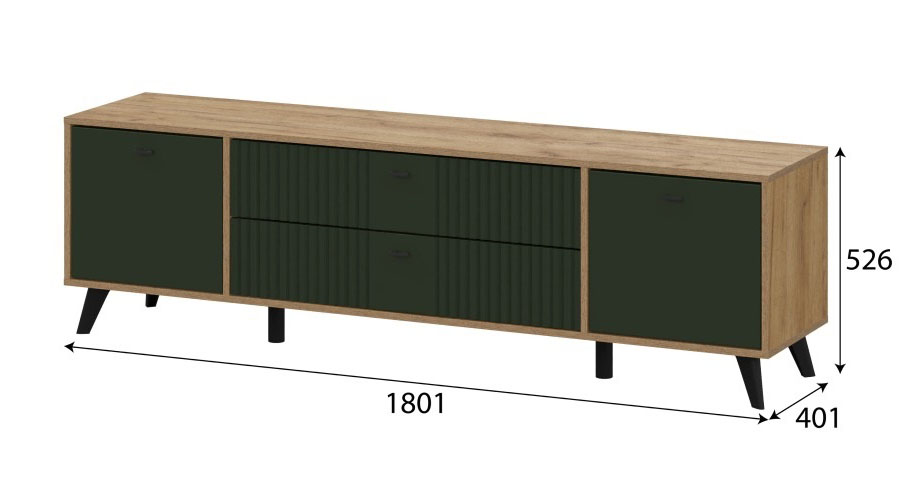 Оптимальные размеры: С габаритами 180,1 x 52,6 x 40,1 cм, тумба идеально подходит для размещения вашей техники и аксессуаров, обеспечивая максимальную функциональность.