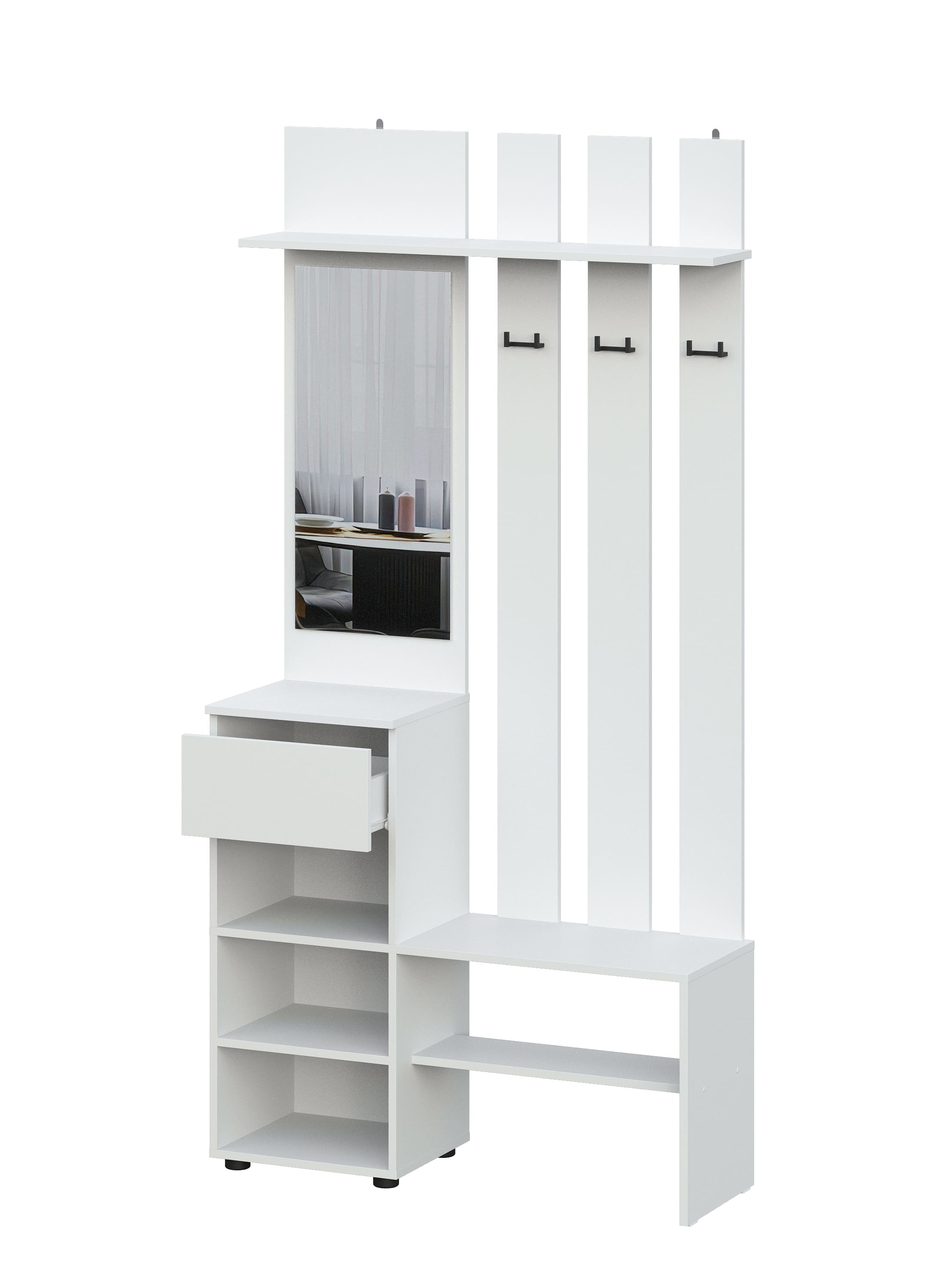 Сборка корпуса универсальная (собирается как на левую, так и на правую сторону). Обязательно крепление зеркала и вешалки к стене при помощи входящих в комплект плоских навесов. Максимальная нагрузка на ящики - 5 кг, на крышку тумбы - 20 кг, на верхнюю полку под вешалкой - 10 кг, на нижнюю полку под вешалкой - 5 кг, на полку вешалки - 3 кг.